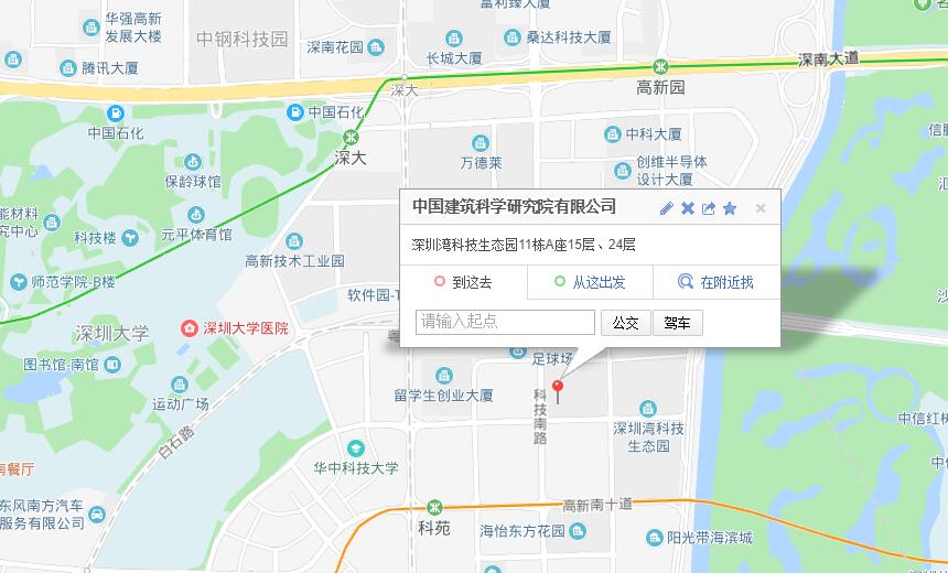 中國建筑科學研究院有限公司深圳分公司電話(TEL):0755-26727000(總機)傳真(FAX):0755-26727878 郵編:518057地址:深圳市南山區深圳灣科技生態園11棟A座15層、24層E-mail:yuanban@cabr-sz.com