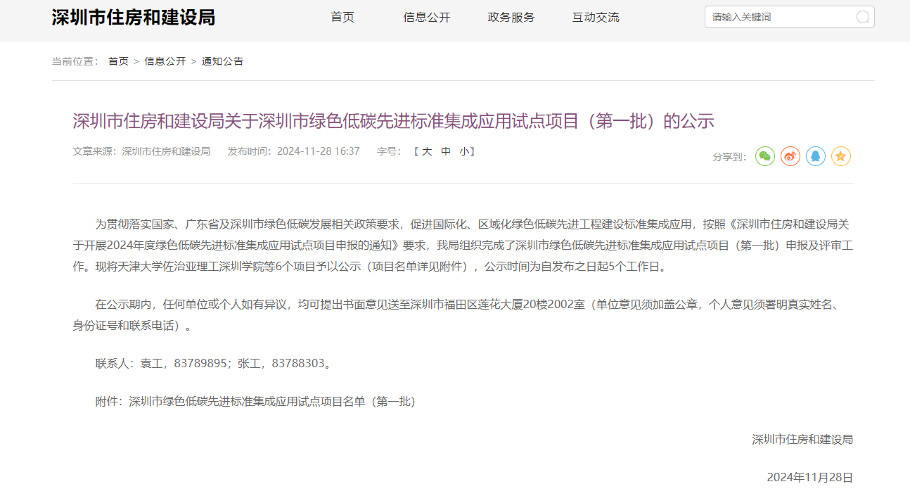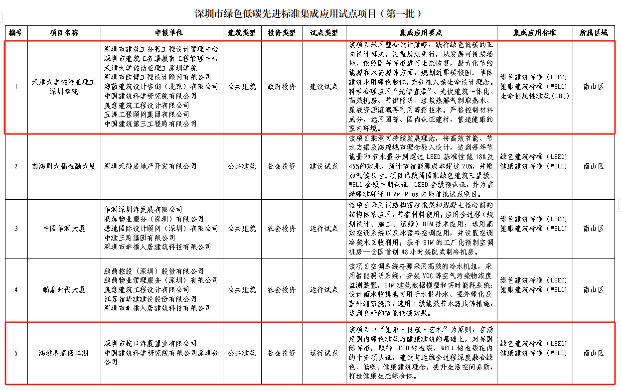 近日,深圳市住房和建設局發(fā)布了深圳市綠色低碳先進標準集成應用試點項目(第一批)公示,中國建研院深圳分公司兩個項目成功入選,在本次公示的六個試點項目中數(shù)量處于領先地位,充分體現(xiàn)了中國建研院深圳分公司在大灣區(qū)綠色低碳發(fā)展領域的品牌影響力。