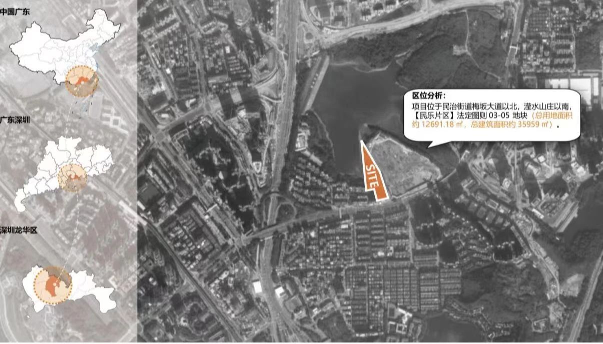 項目位于龍華區(qū)民治街道梅坂大道以北,瀅水山莊以南。南側(cè)、西側(cè)和東側(cè)為二類居住用地,北側(cè)為水庫水面。學校總用地面積12691.18平方米,總建筑面積約35959平方米,擬建設一所36班/1620學位小學。