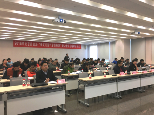 11月1日,由院檢測中心實施的2016年北京市質量技術監督局“建筑門窗氣密性檢測能力驗證總結和研討會”在我院召開,北京市質量技術監督局的周宏偉處長和中心王霓主任出席了本次會議,同時北京60家實驗室約100名從事門窗氣密檢測的檢測人員和管理人員參加。本次會議北京技監局周處長介紹了有關監管和能力驗證的政策,項目負責人昌文芳對本次能力驗證計劃進行了詳細的介紹,能力驗證部馬捷主任對實驗室應如何利用能力驗證結果進行指導、關鍵技術人員劉昊對建筑門窗氣密性能檢測的試驗原理及試驗要點進行了詳盡的分析。