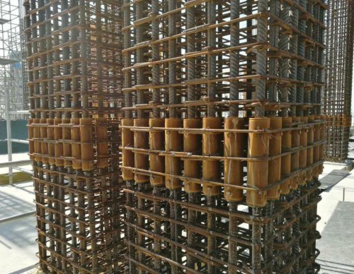 港珠澳大橋沉管隧道與東西人工島暗埋段,因項目對原材料工藝要求高,并且需要用到大量的現澆結構梁鋼筋籠和現澆結構柱鋼筋筋籠。這對于鋼筋連接的強度、加工工藝、設備加工都是挑戰。特別是在梁、柱鋼筋籠的對接上,傳統的鋼筋籠連接如鐓粗直螺紋鋼筋連接技術,加長絲吸收裝配誤差的能力不夠,而且大直徑多數量的鋼筋密集會造成操作不便,管鉗伸展不開。在研究了此類鋼筋連接的問題后,建研科技的技術專家提出了使用定制化的CABR的灌漿套筒連接解決方案來完成項目中的現澆結構梁、柱鋼筋(籠)連接,這也是國內現澆結構中大量使用鋼筋套筒灌漿連接技術的首個項目。
